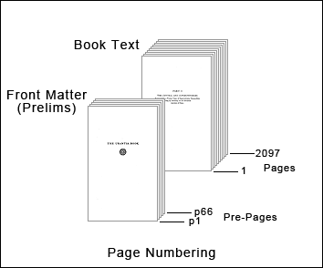 Specify the front matter pre-pages by the pre-page numbers p1 through p66 and the book text pages by the page numbers 1 through 2097.